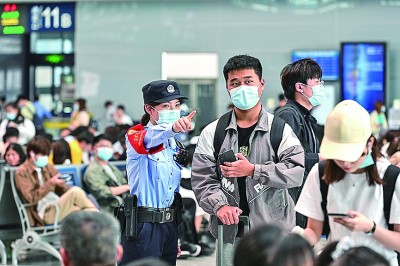 安徽蕪湖站候車大廳,合肥鐵路公安處蕪湖站派出所青年警察在為旅客提供幫助。新華社發