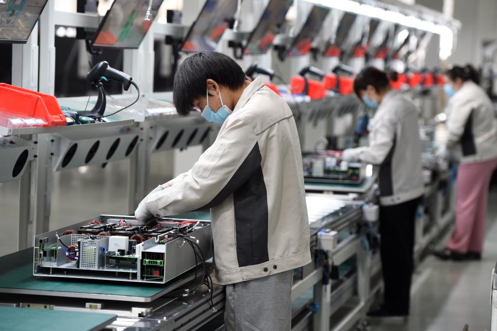5月10日,工人在合肥科威爾電源系統股份有限公司生產車間進行裝配。新華社記者 周牧 攝
