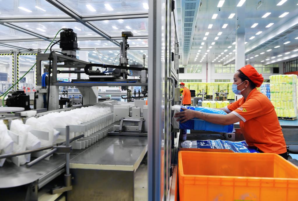 這是5月13日拍攝的泉州石獅一家紙尿褲生產企業生產場景。新華社記者 魏培全 攝