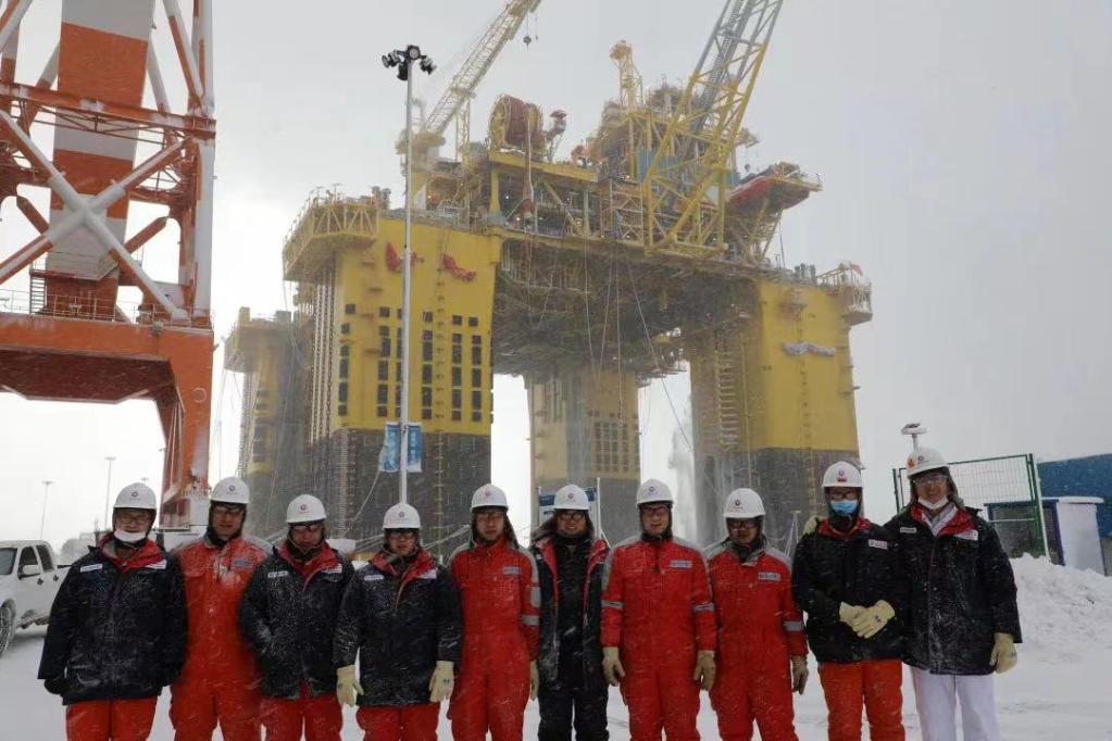 “深海一號”開發生產團隊在煙臺建造場地合影。(受訪對象供圖)