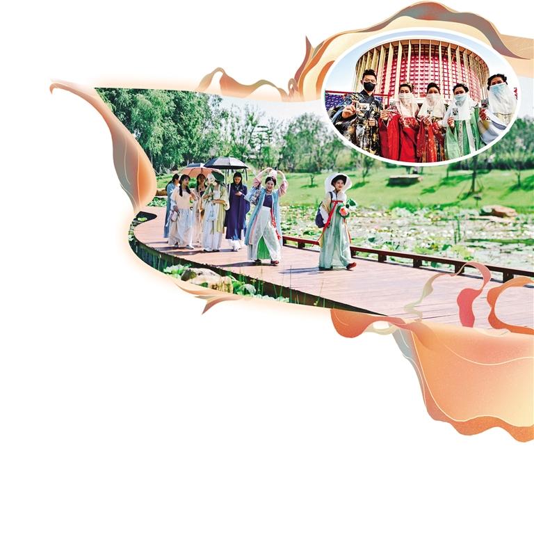 今年“五一”假期,沉浸式唐風(fēng)市井生活街區(qū)“長安十二時辰”在西安開市,不少游客特地?fù)Q上唐制漢服,前來觀唐藝、聽唐樂、品唐食。錯落有致的古風(fēng)建筑間,衣袂飄飄,裙裾飛揚(yáng),漢服之美引人注目。