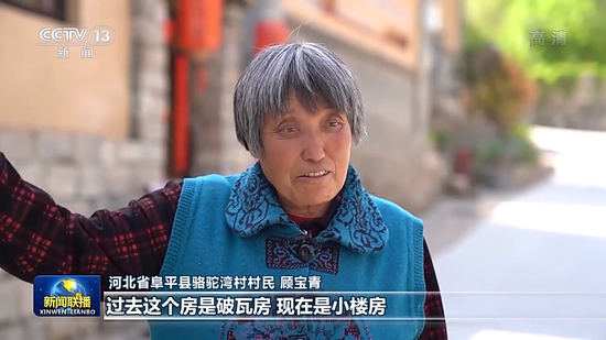 河北省阜平縣駱駝灣村村民 顧寶青:過去這個房是破瓦房,現在是小樓房。過去路是土路,現在是柏油路。日子越過越紅火,感謝黨中央的好政策。
