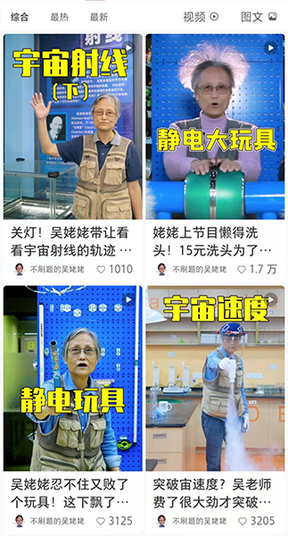 視頻中的老人叫吳於人,網(wǎng)友稱她“吳姥姥”,72歲,坐擁百萬(wàn)粉絲。“吳姥姥”退休前是同濟(jì)大學(xué)物理學(xué)教授,退休后成了愛“玩”物理的老小孩,在她手里,雞蛋、花生、硬幣等都能成為實(shí)驗(yàn)用品。