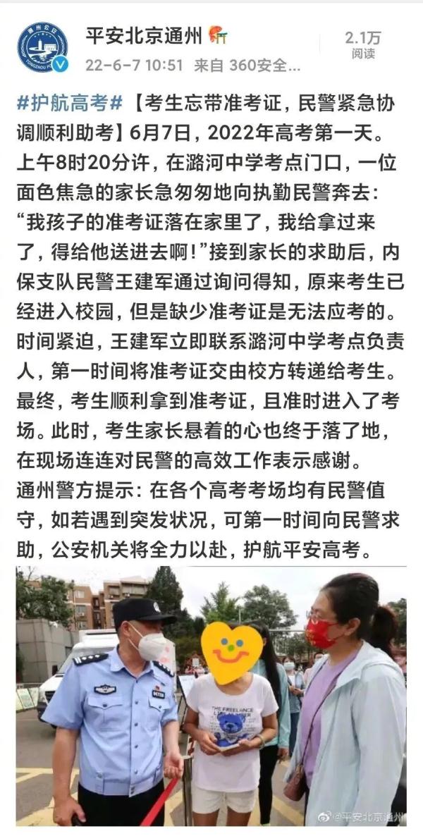 還有通州一學(xué)生忘帶準(zhǔn)考證