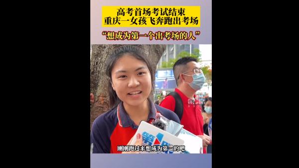 一女孩飛奔出考場