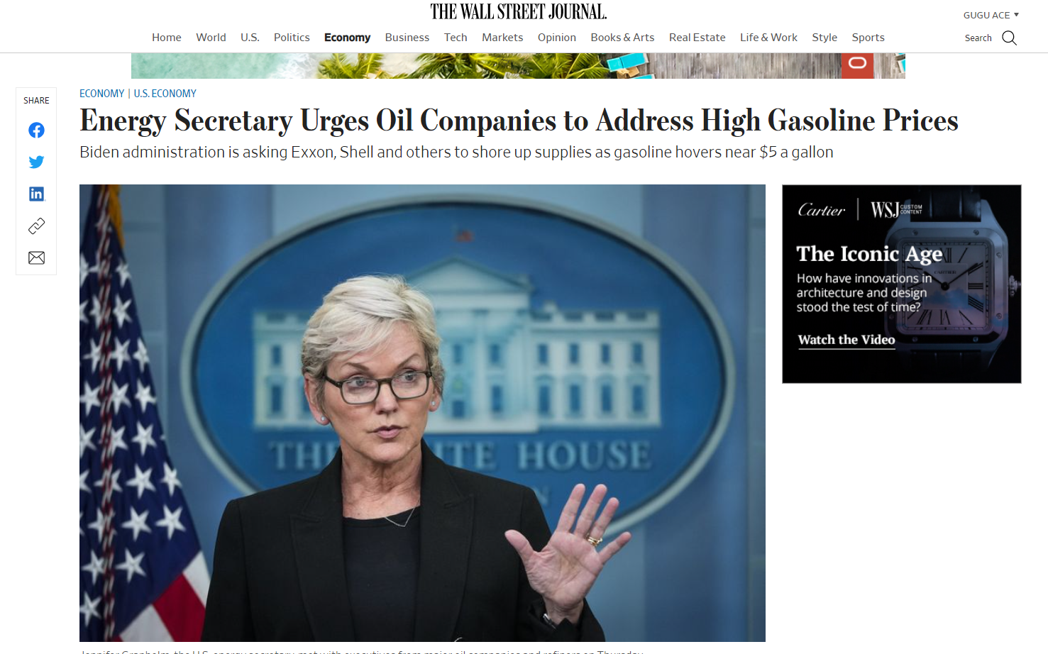 △《華爾街日報(bào)》報(bào)道,美國能源部長敦促石油公司解決高油價(jià)問題