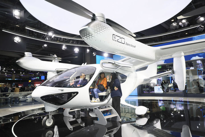 全尺寸傾轉涵道翼構型設計、可垂直起降的“空中專車”“飛”進展館;Cybercab賽博無人駕駛電動車迎來其亞太首秀;頭戴式AI—AR導航定位系統、商用認知機器人等驚艷亮相……超43萬平方米的展館內,創新的熱浪撲面而來。