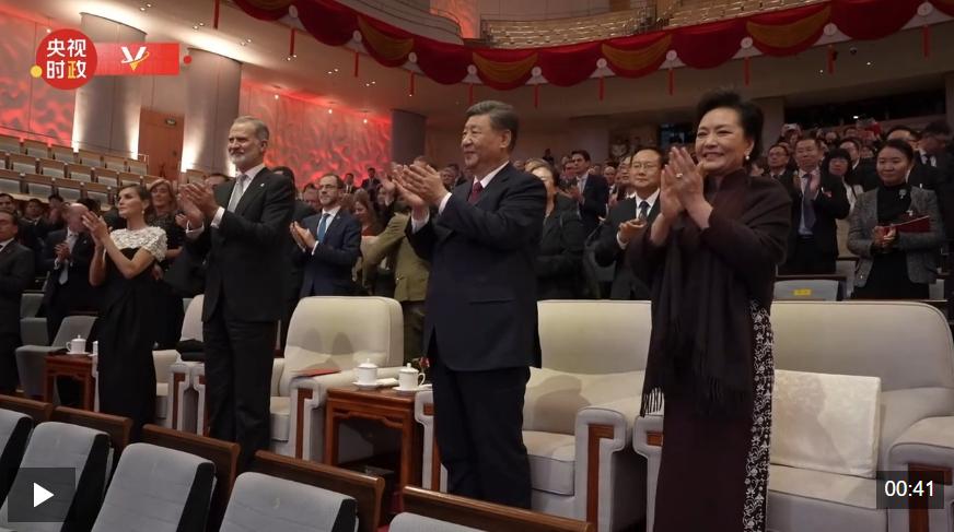 11月12日晚,國(guó)家主席習(xí)近平和夫人彭麗媛在北京國(guó)家大劇院同西班牙國(guó)王費(fèi)利佩六世夫婦一同觀看西班牙皇家劇院音樂(lè)會(huì)。