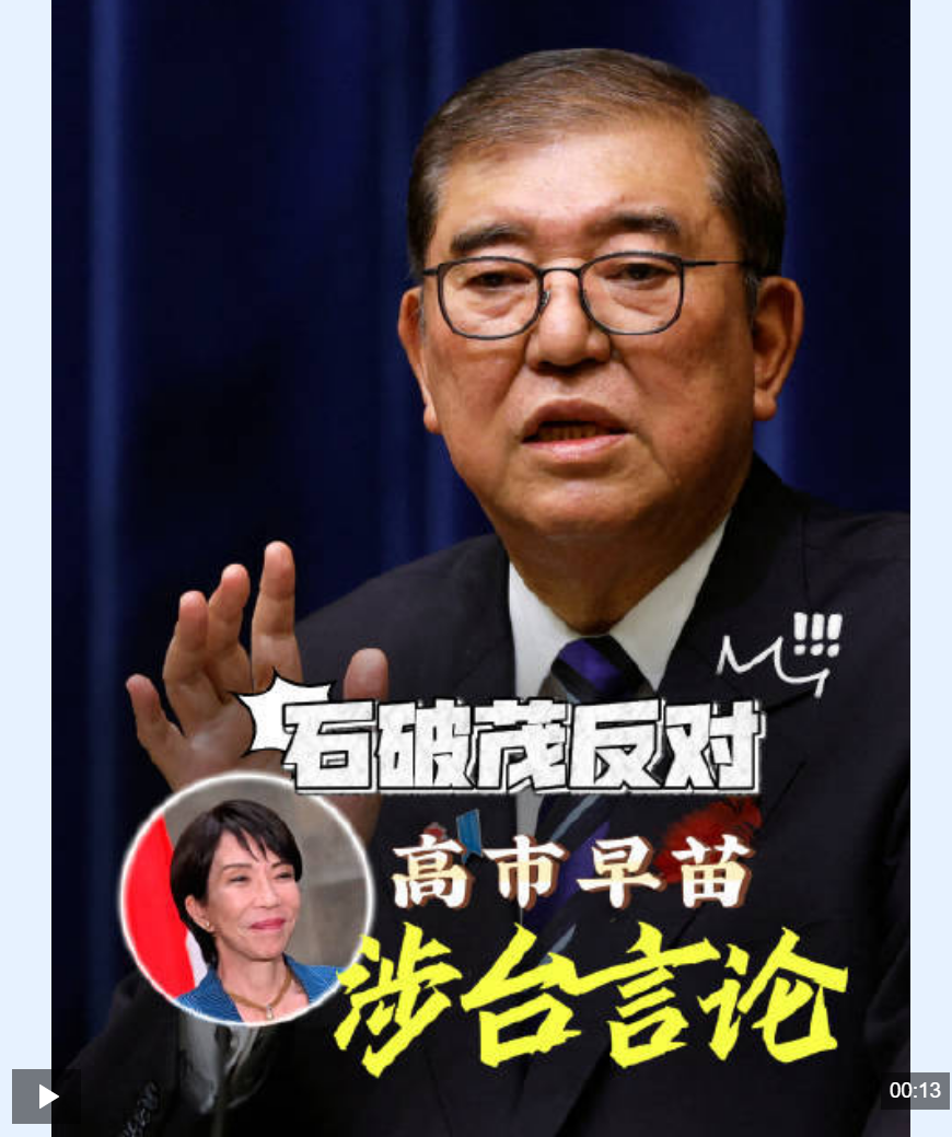 日本前首相石破茂表示,在臺灣問題上,歷屆日本政府一直在避免發表類似“如果出現某種情況就會這樣做”的確定性言論。日本前首相鳩山由紀夫發文強調,臺灣就是中國的內政問題,而日本不該干涉。日本前首相野田佳彥則在采訪中指出“這是歷代首相都在一定程度上止步的話題”,他對高市的發言“深感震驚”。