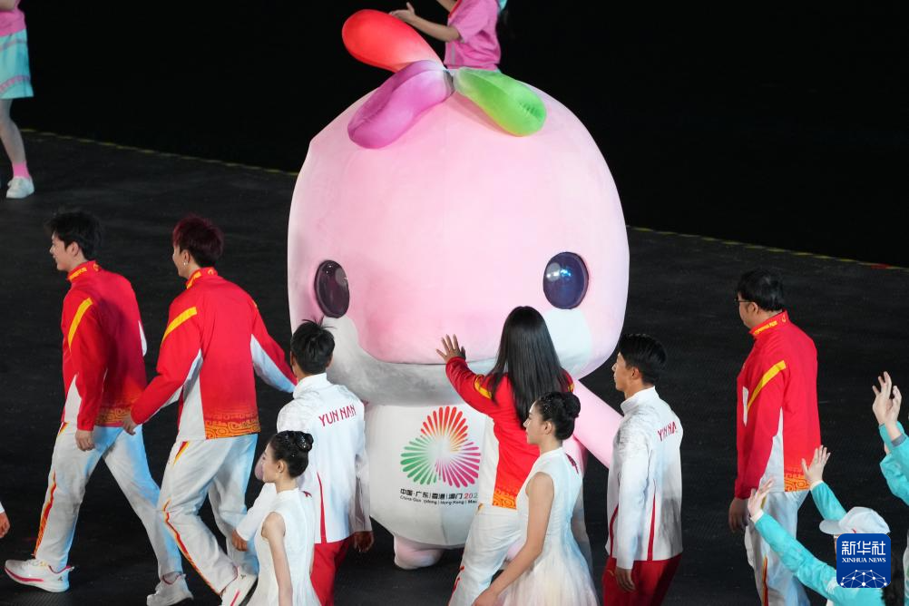 11月21日,廣東省體育代表團、香港特別行政區體育代表團和澳門特別行政區體育代表團代表在閉幕式入場儀式上共同入場。