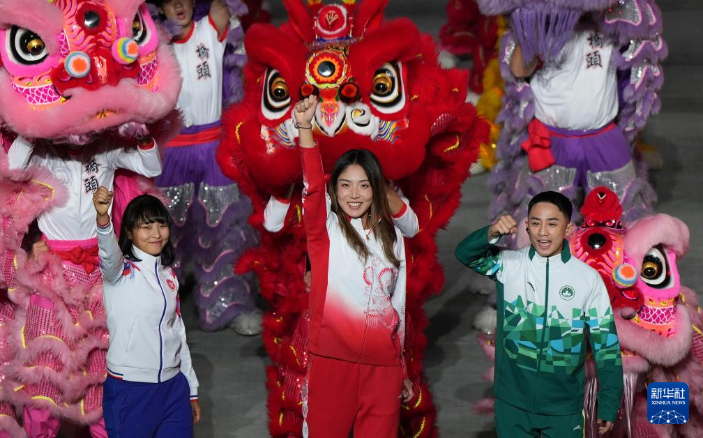 11月21日,廣東、香港和澳門體育代表團代表在閉幕式上入場。