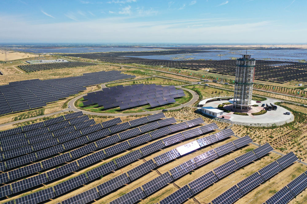 這是2025年7月30日拍攝的內蒙古鄂爾多斯市達拉特旗光伏基地(無人機照片)。新華社記者 李志鵬 攝