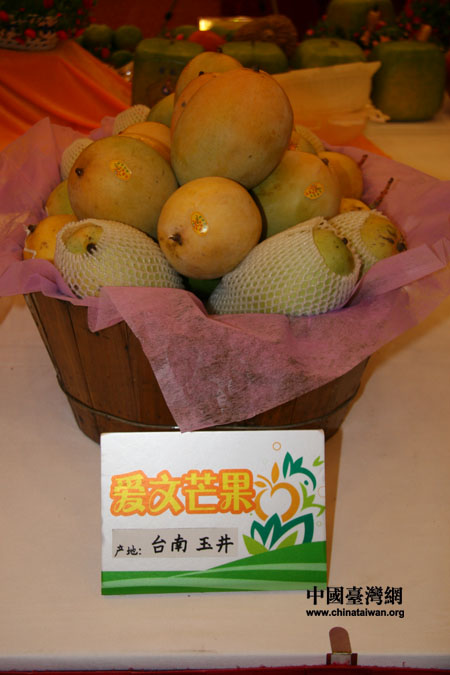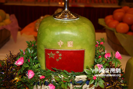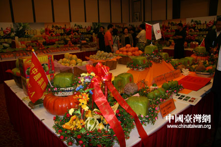 中國(guó)臺(tái)灣網(wǎng)9月11日北京消息 第十屆京臺(tái)科技論壇11日在北京國(guó)際會(huì)議中心隆重開(kāi)幕。京臺(tái)2008奧運(yùn)果品推介交流會(huì)在此間舉行。推介會(huì)現(xiàn)場(chǎng)內(nèi),兩岸各種水果爭(zhēng)奇斗妍,果香襲人。來(lái)自臺(tái)灣的四十六位農(nóng)業(yè)專(zhuān)家與北京的農(nóng)業(yè)專(zhuān)家、在京臺(tái)資農(nóng)企領(lǐng)導(dǎo)們相聚一堂,共同品鑒2008奧運(yùn)果品。其中臺(tái)灣中農(nóng)集團(tuán)展示的專(zhuān)利造型水果,因造型奇特,創(chuàng)意新穎而備受與會(huì)嘉賓的喜愛(ài)。(陳寧)