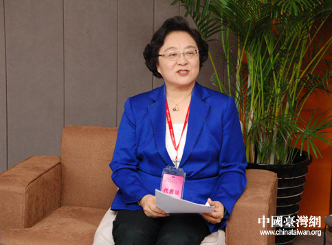 林文漪在臺盟第八次全盟代表大會暨紀念臺盟成立60周年大會閉幕式后與媒體見面 (攝影:田云鵬)