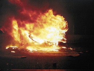 報道說,臺灣高速公路警方今天凌晨零時30分左右接報,指稱在三號高速公路北上304公里、接近臺南縣與嘉義縣交界路段,發生小客車對撞起火事故。