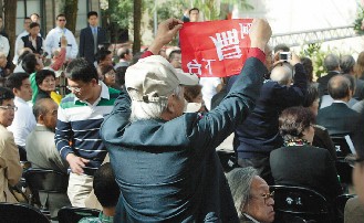 “臺灣人權景美園區”開園揭牌典禮,陳水扁致詞時,臺下突然有人拿起“阿扁下臺”紅布條。