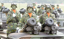 2008年元旦起,臺軍義務役兵只須服役1年。圖為臺陸軍反裝甲“標槍”導彈部隊官兵。(臺灣《中國時報》圖片)