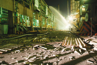 臺灣“中油”高雄煉油廠昨晚發生氫氣爆炸,現場滿目瘡痍。(聯合報圖)