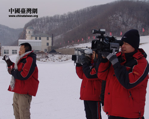 采訪第一天。“北國風(fēng)光,千里冰封,萬里雪飄,江山如此多嬌”,面對茫茫雪景,兩岸攝影記者拍攝無休止,工作勁頭十足