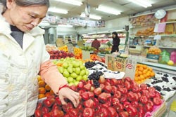 年關將近,臺灣水果價格一路攀升,一名婦女采辦年貨,看到水果價格飛漲不禁低頭輕嘆。臺灣《中國時報》許正宏攝
