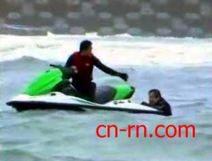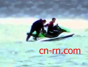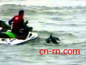 連忙爬上水上摩托車,拖回岸邊。