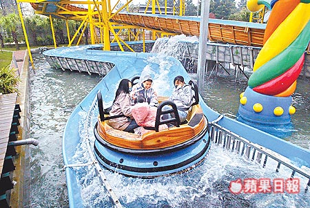 桃園小人國樂園:游客玩“瘋狂急流”。