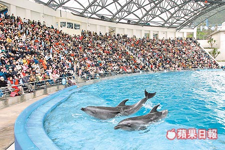 花蓮海洋公園:海豚表演座無虛席。