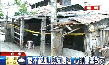 中國臺灣網2月13日消息 據臺灣TVBS電視臺報道,臺東近日出現低溫天氣,昨晚更是達到入冬以來最低溫13度,造成2人凍死,其中1名男子是和朋友在木屋喝酒,簡陋的屋子擋不住寒風,這名男子在睡夢中疑似心肌梗塞死亡。