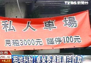 北投中央南路停車場,雖然屬于臺北市政府所有,但卓榮泰的遠親卓明強多年前就承租下來,打著月租3000元(新臺幣,下同),臨時停車100元轉租給別人。旁邊的海產快炒店向卓榮泰租地,方便客人停車,但糾紛也因此產生,快炒店老板張先生說,他每個月給卓明強47,500元的租金,還當他的連帶保證人,但卓明強卻沒給臺北市政府租金,害得他的房子被查封。