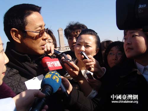 全國政協(xié)十一屆一次會議開幕,臺灣媒體圍堵追訪政協(xié)委員陳道明