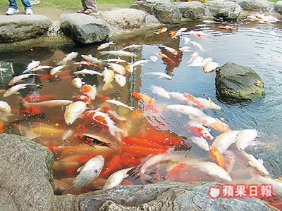 報道說,草世紀園區(qū)內有一口長、寬各15米、平均深度約半米的池塘,從4年前起飼養(yǎng)錦鯉供游客觀賞、喂食。昨天上午,有游客發(fā)現錦鯉一尾尾陸續(xù)翻白浮出水面,散發(fā)陣陣刺鼻腥臭,池面還有濃稠的白色泡沫。