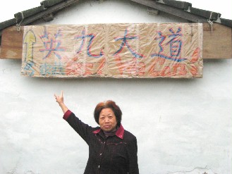 苗栗馬家莊暴紅,有民眾在家門外掛上“英九大道”路標。(聯合報圖)