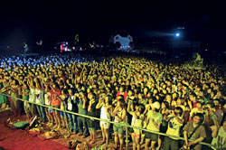 晚上10點(diǎn)后,各場(chǎng)音樂(lè)會(huì)人潮不斷涌入,在墾丁大街福華飯店舉辦的“SVC停止惡性循環(huán)”排隊(duì)人龍似乎無(wú)盡,時(shí)尚男女在“嘻哈區(qū)”、“電音區(qū)”各取所需,high翻畫(huà)面不斷,引得群眾歡呼喝彩。