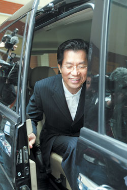 民進黨秘書長李應(yīng)元11日參加該黨“立法院”黨團大會,會后低調(diào)的搭車離去。(臺灣《中國時報》圖片)
