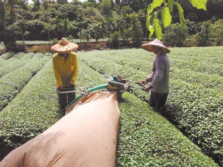 臺灣茶葉單是去年銷到大陸的金額高達116萬美元,“登陸”5年來增長8倍。圖為南投縣茶農采茶情形。(臺灣《中國時報》圖片)