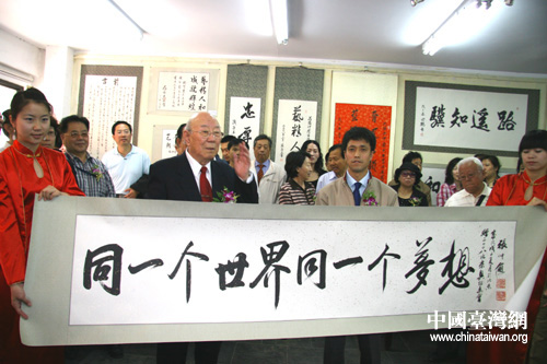 中國臺灣網5月8日北京消息 今天上午10點,正值北京奧運圣火首次登上地球之巔珠峰之際,當代著名書法家張仲愈先生的迎奧運書法匯報展在北京榮寶齋開幕。開幕式上,張仲愈先生向北京奧組委捐贈大幅作品“同一個世界 同一個夢想”和一副六尺楹聯 “奧運雄風健兒名揚四海;中華盛世英雄功耀九州”;向國際奧委會主席羅格先生贈送一副8尺橫幅作品“更快、更高、更強”。
