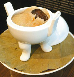 臺(tái)北“故宮晶華”餐廳筵席中的弦紋鼎,就是一道魚翅料理,島內(nèi)外動(dòng)物保護(hù)團(tuán)體指責(zé)“故宮”把魚翅料理當(dāng)寶,破壞動(dòng)物保護(hù)形象。臺(tái)灣《聯(lián)合報(bào)》資料照片