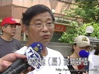 這位先生23日一早詩興大發(fā),拿出自己寫的打油詩要送給陳水扁家。圖片來源:臺(tái)灣“東森新聞”