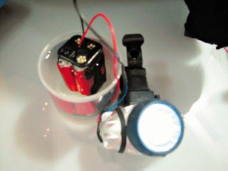 廖重賓說,很多小學生做過蘋果發電的實驗,就是利用有機質發電的原理,但電流都太低。他研發的葉綠素純有機電池是目前全球最大電流的有機電池,電能是日本“水電池”的一倍。而且用到沒電時,沾水10秒鐘就可回復電力重復使用。不只沾水就可充電,連茶、可樂、咖啡、果汁等只要是水溶液都可以。