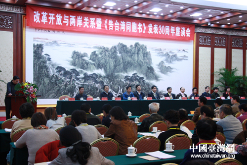 北京市臺(tái)聯(lián)召開“改革開放與兩岸關(guān)系暨《告臺(tái)灣同胞書》發(fā)表30周年座談會(huì)”(鐘寶華 攝)