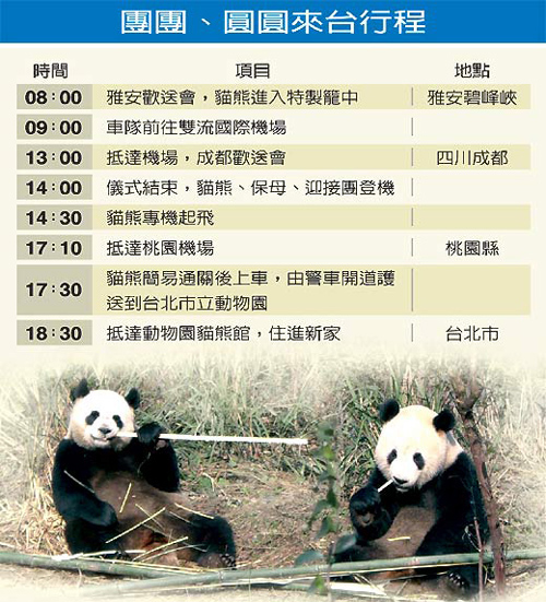 團團、圓圓赴臺行程。圖:臺灣《聯合報》