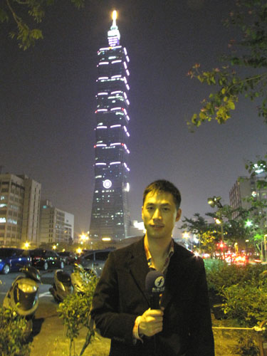 東南衛視臺灣駐點記者葉青林在臺北101大樓前出鏡。(圖片提供:東南衛視)