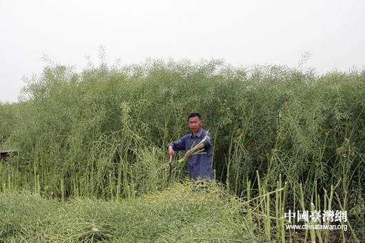 北川新城新址上,搬遷村民鄧大叔正在收割自家田里最后一茬莊家,未來(lái)這里將拔地而起一座嶄新的北川城。(中國(guó)臺(tái)灣網(wǎng) 鐘寶華 攝)