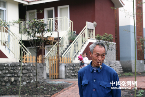 在“鹿鳴河畔”,63歲的王老漢身后的住宅將成為“商住兩用”的鄉(xiāng)村式酒店。 (中國臺灣網(wǎng) 田云鵬 攝)