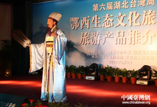 中國臺灣網5月10日宜昌消息 9日下午,第六屆湖北武漢臺灣周“鄂西生態文化旅游圈旅游產品推薦會”在宜昌舉辦,為到場的兩岸嘉賓獻上了一場深具鄂西風情的文藝表演。(記者 焦瑩瑩)