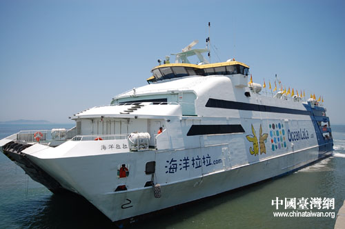 中國臺灣網5月15日莆田消息 今天下午一時許,臺灣媽祖信眾直航湄洲進香團的350名臺灣同胞,乘坐“海洋拉拉號”客輪由臺中港抵達莆田湄洲島3000噸級客運碼頭,首屆海峽論壇系列活動序幕由此拉開。