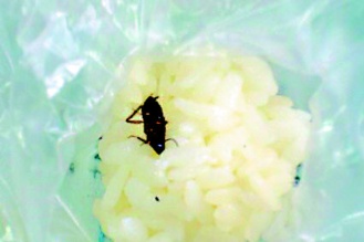 臺北市大安小學去年10月6日的米飯里出現(xiàn)小蟑螂。(圖片來源:臺灣《聯(lián)合報》)