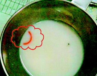 臺北市西松小學3月18日的湯中出現(xiàn)橡皮筋。(圖片來源:臺灣《聯(lián)合報》)
