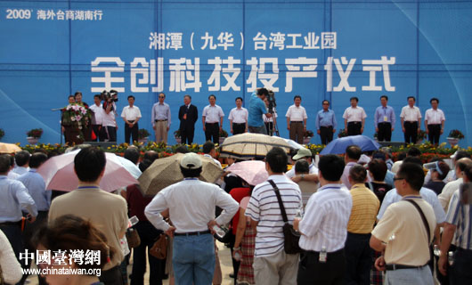 6月7日下午,參加“2009海外臺商湖南行”活動的海外臺商,在湘潭臺灣工業園內參加臺企全創科技投產儀式。(中國臺灣網 鐘寶華 攝)
