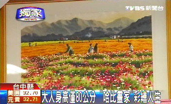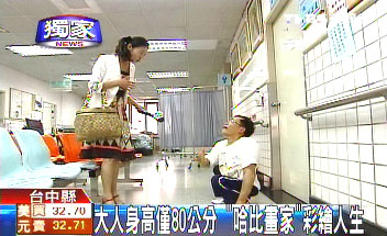 臺灣一成年男子徐劭方因病雙腿萎縮,直立身長僅80厘米,他在繪畫領域找到信心和自我。(圖片來源:臺灣TVBS電視臺)